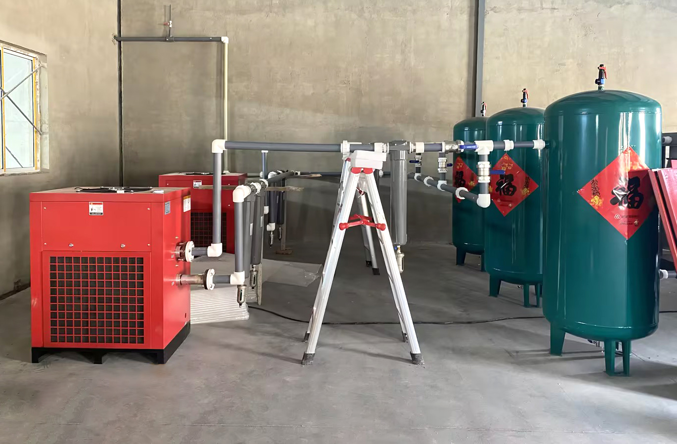 När vår luftkompressor används i samband med utrustningen efter behandlingen visar den dessutom ännu kraftfullare funktioner. Utrustningen efter behandlingen kan ytterligare rena tryckluften, ta bort föroreningar, fukt och olja, ge företaget högkvalitativa luftkällor och effektivt säkerställa kvaliteten och säkerheten för djurhållningsprodukter.
